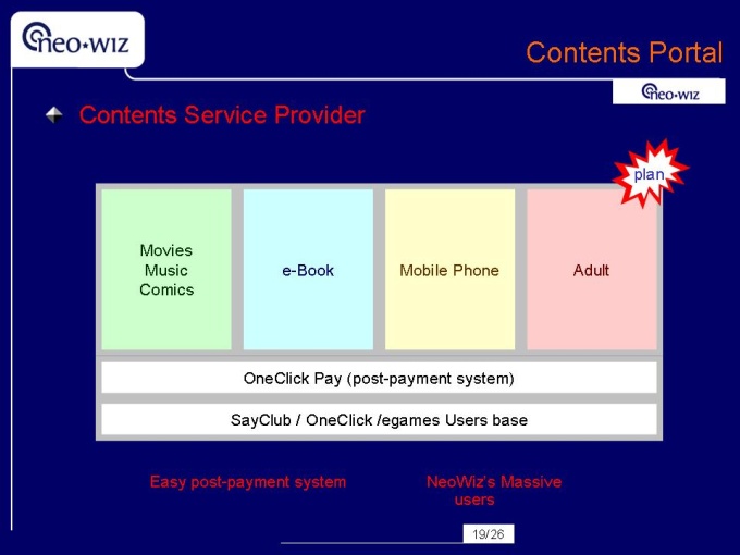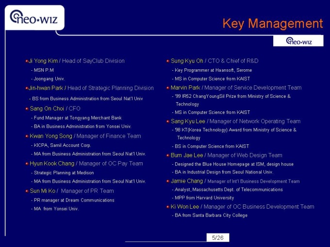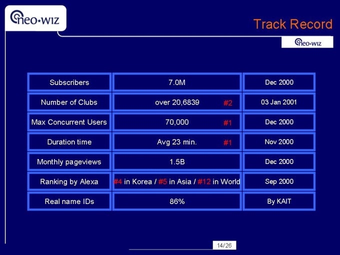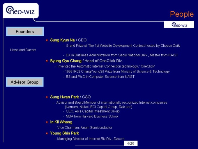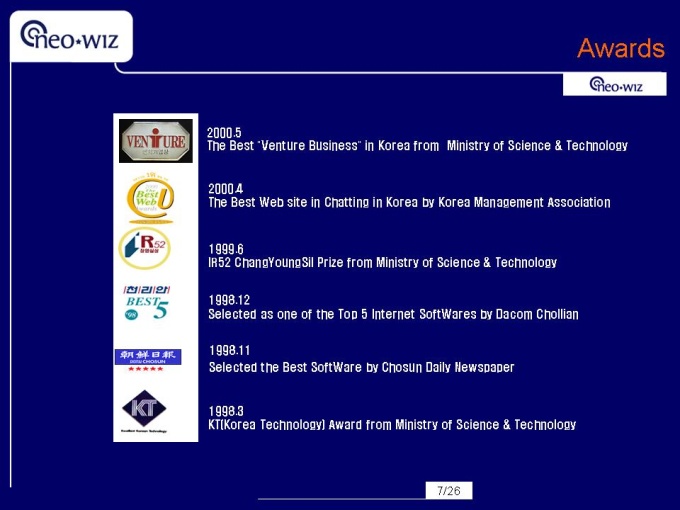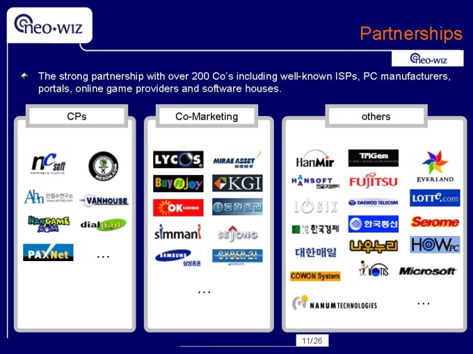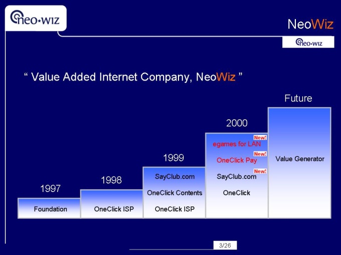 영문으로 작성된 회사소개서입니다. 네오위즈 용량 : 593k 슬라이드갯수 : 26 파워포인트 자료