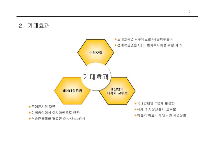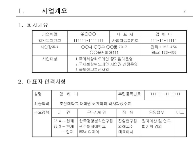 국가 최상위 장기 도메인 임대 사업권 신청운영에 관한 사업계획서입니다. 1.사업개요 1-1. 회사개요 1-2. 대표자 인적사항 1-3. 추진일정 1-4. 예상소요자금 & 예상매출액 2.사업목적 및 기대효과 2-1. 사업목적 2-2. 기대효과 3.시장분석 3-1.국내외 인터넷 시장분석