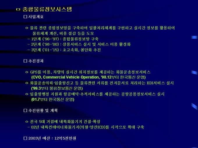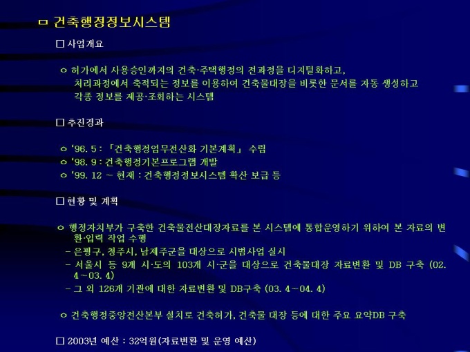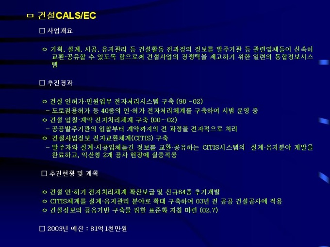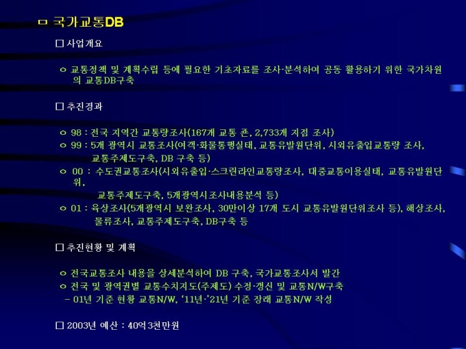 [건설교통 정보화사업 현황 정보화 추진계획 사업계획서(건설교통부)]