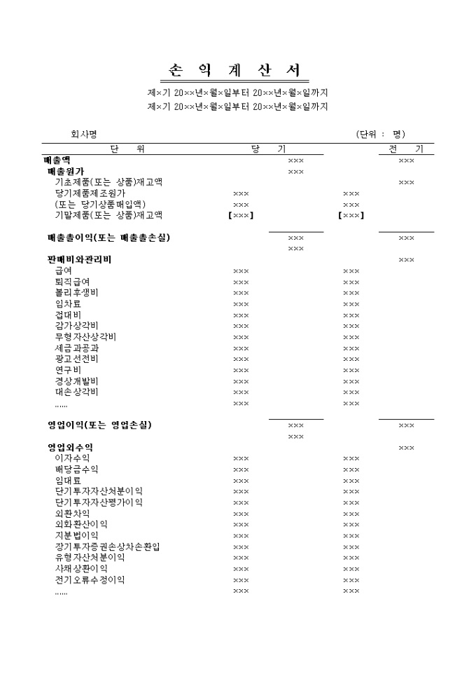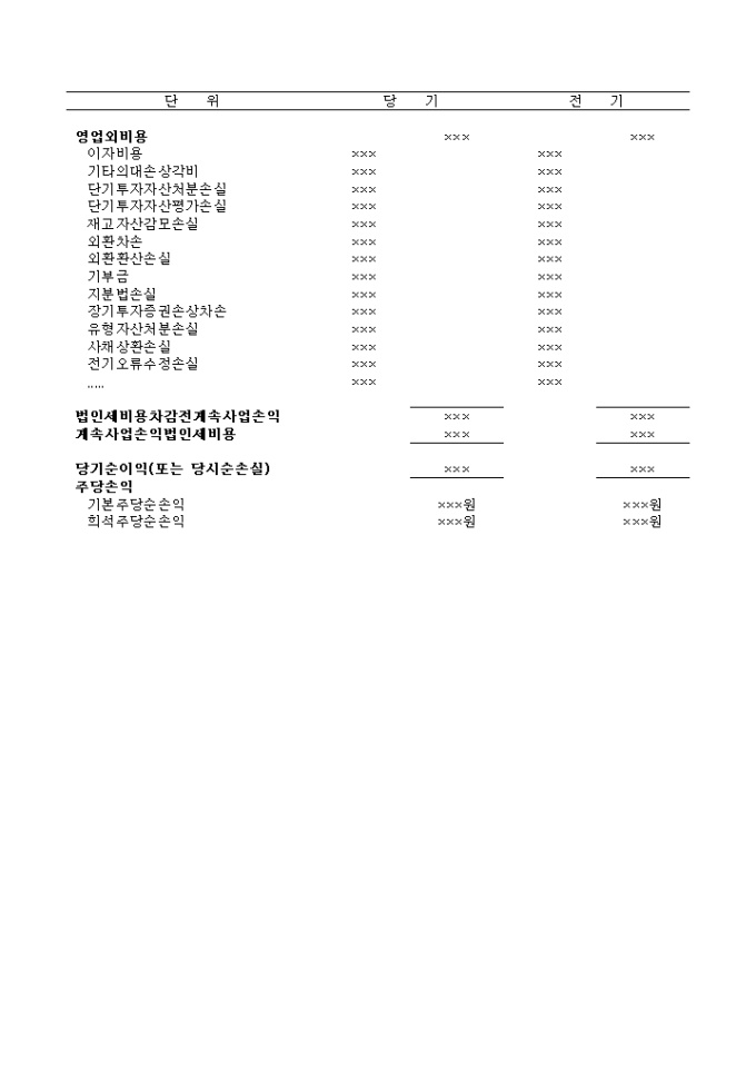 중단사업손익이 없을 경우 사용하는 손익계산서입니다.