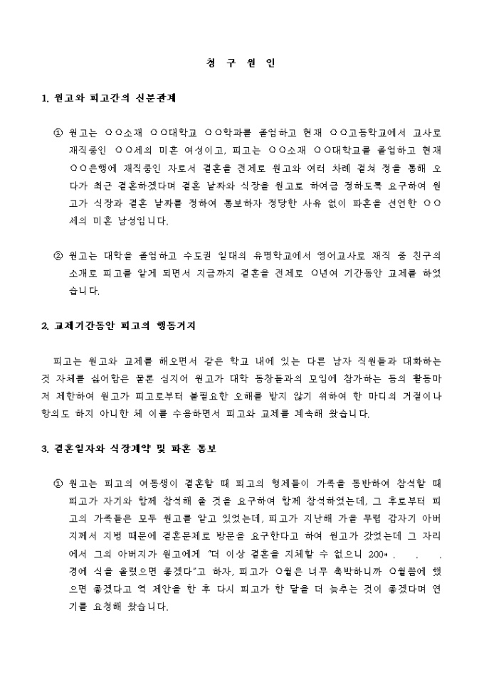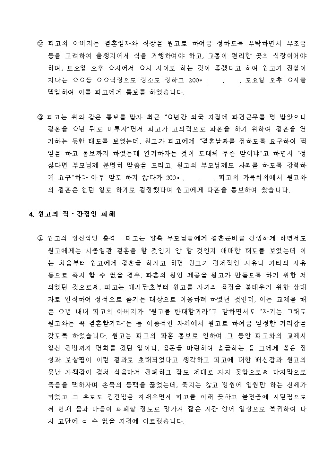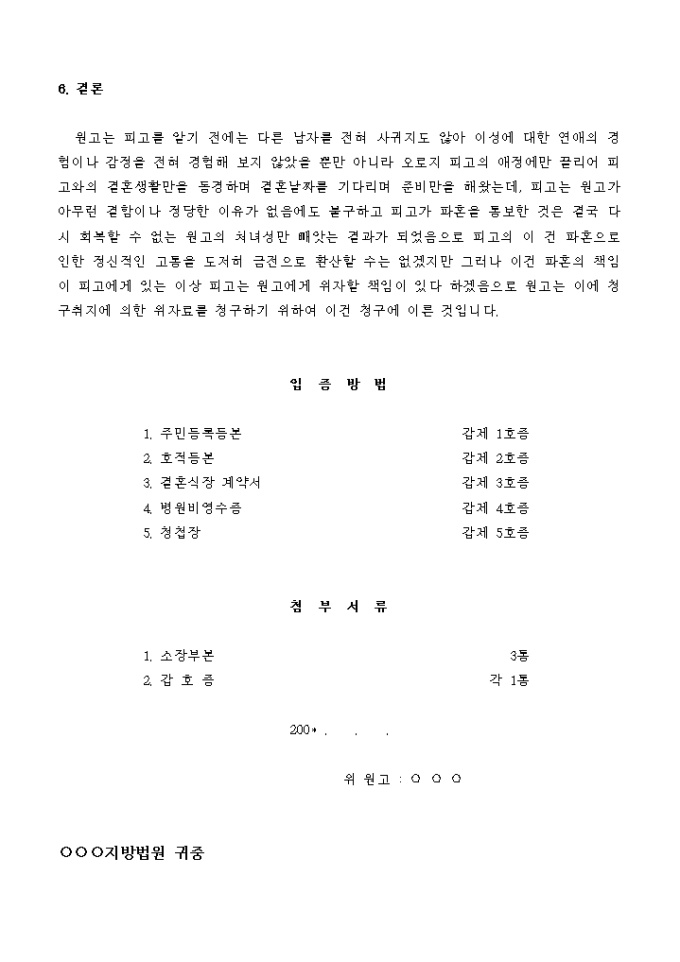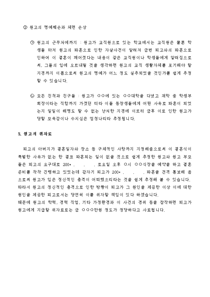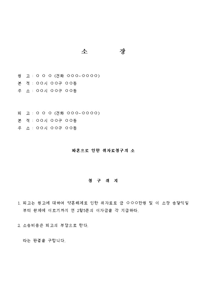9,000원/월피고는 원고에 대하여 약혼해제로 인한 위자료로 금 ○○○만원 및 이 소장 송달익일부터 완제에 이르기까지 연 2할5푼의 이자금을 각 지급하라.