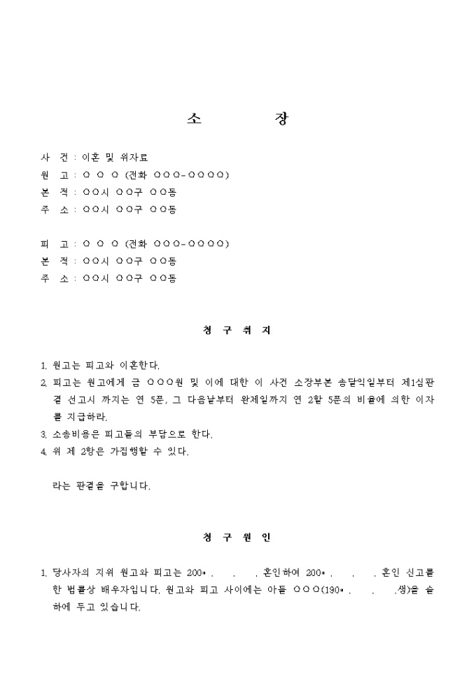 이혼 및 위자료 청구의 소