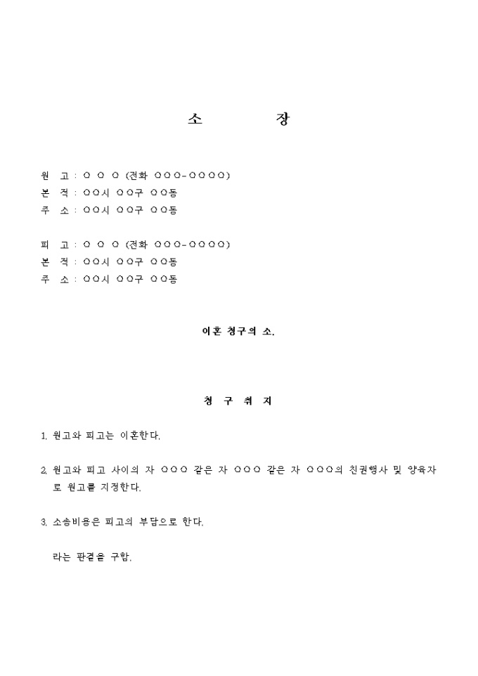 이혼청구 소장(아내의 가출)