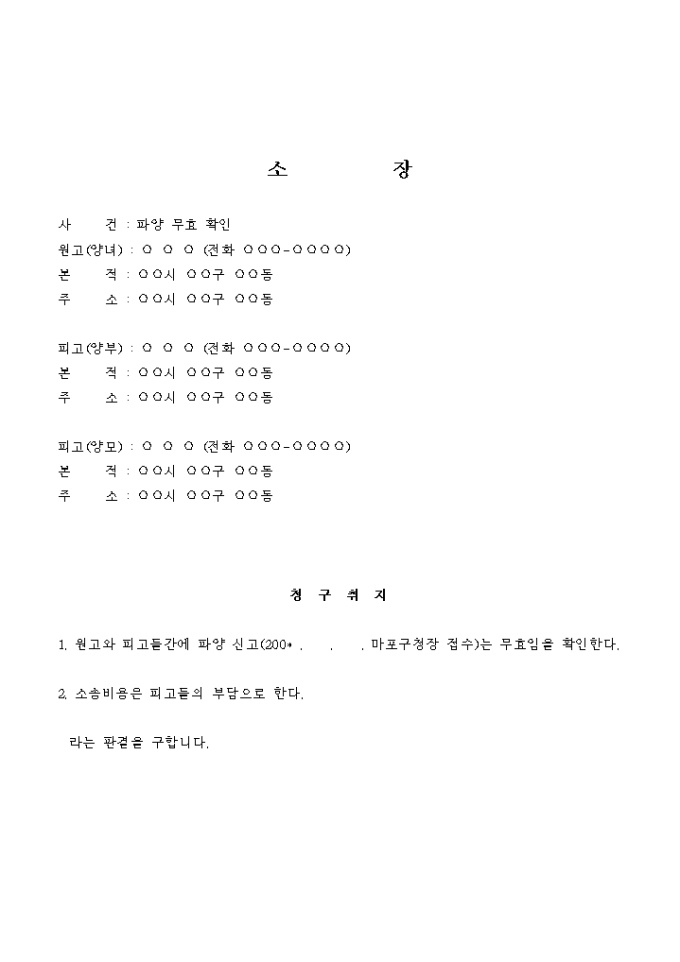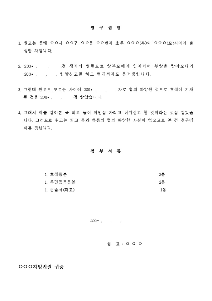 9,000원/월피고 등이 이민을 가려고 허위신고 한 것이라는 것을 알았습니다. 그러므로 원고는 피고 등과 하등의 협의 파양한 사실이 없으므로 본 건 청구에 이른 것입니다.