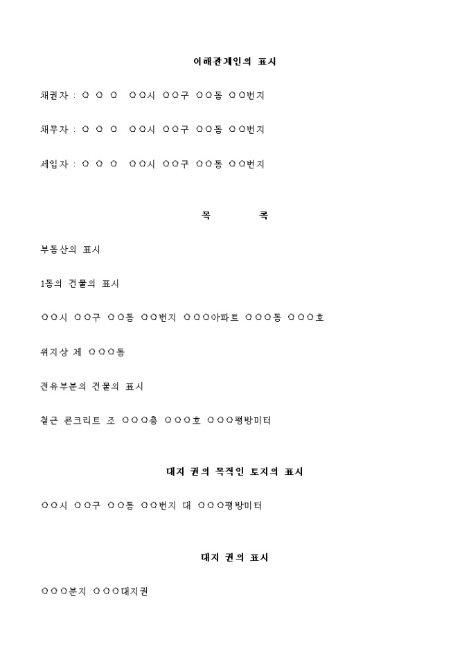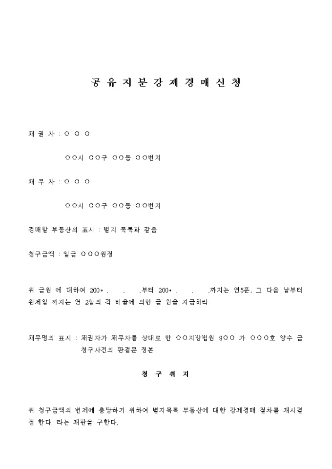 9,000원/월위 청구금액의 변제에 충당하기 위하여 별지목록 부동산에 대한 강제경매 절차를 개시결정 한다. 라는 재판을 구한다.