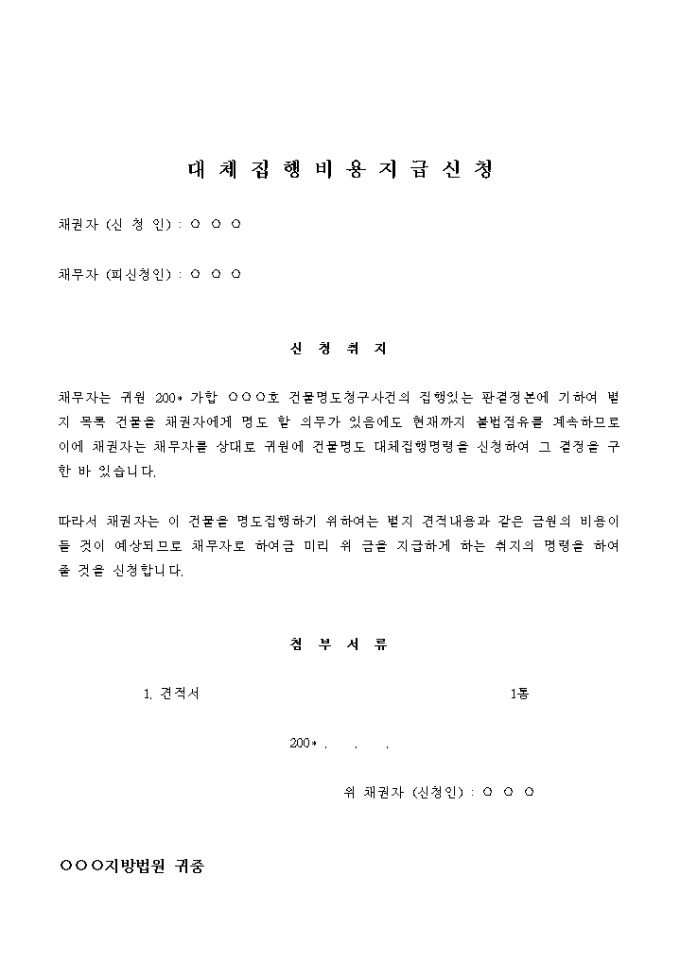 9,000원/월별지 견적내용과 같은 금원의 비용이 들 것이 예상되므로 채무자로 하여금 미리 위 금을 지급하게 하는 취지의 명령을 하여 줄 것을 신청합니다.