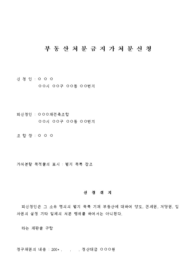 피신청인은 그 소유 명의의 별지 목록 기재 부동산에 대하여 양도, 전세권, 저당권, 임차권의 설정 기타 일체의 처분 행위를 하여서는 아니된다.