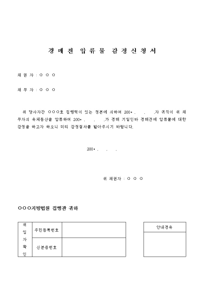 압류물감정 신청서