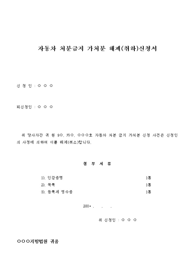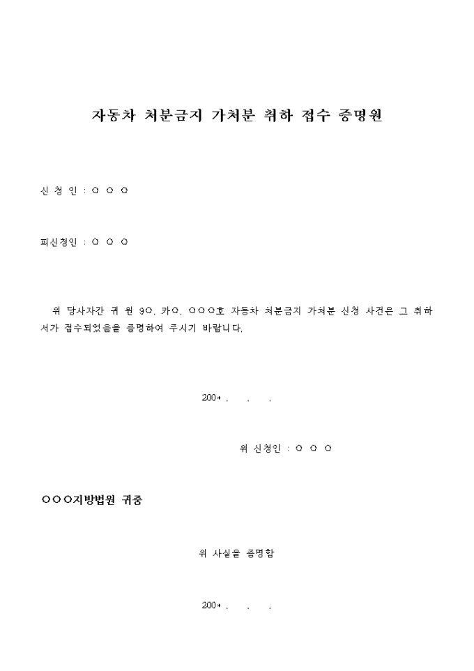 9,000원/월위 당사자간 귀 원 9○. 카○. ○○○호 자동차 처분금지 가처분 신청 사건은 그 취하서가 접수되었음을 증명하여 주시기 바랍니다.