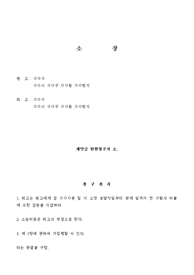 9,000원/월피고는 원고에게 금 ○○○원 및 이 소장 송달익일부터 완제 일까지 연 ○할의 비율에 의한 금원을 지급하라