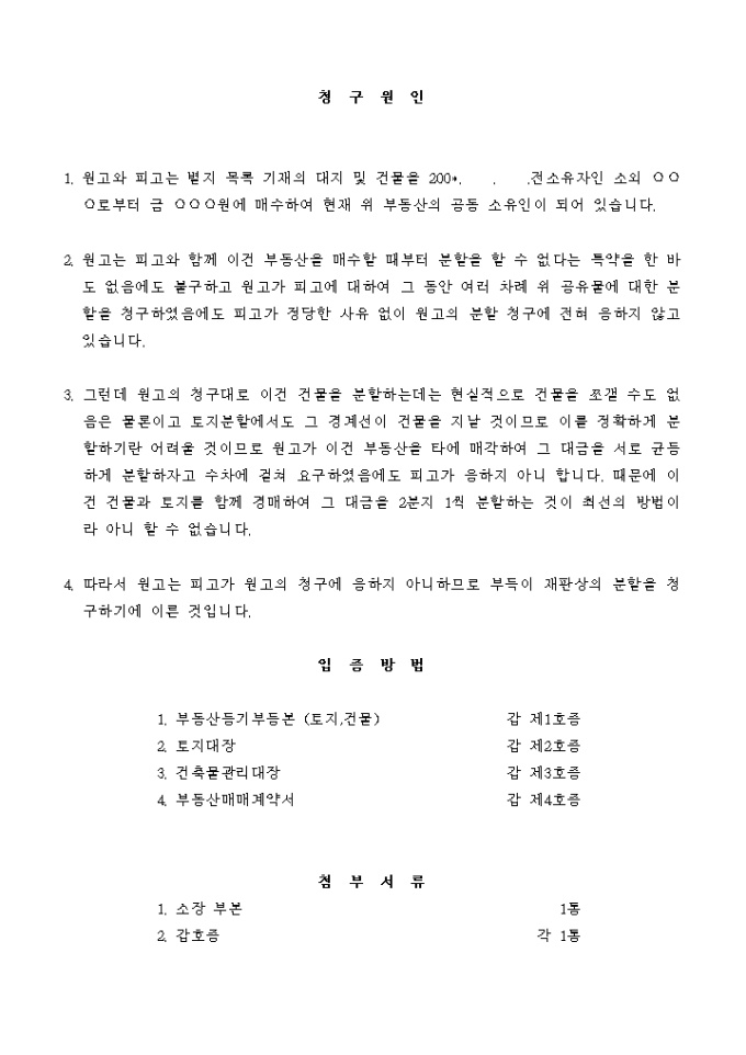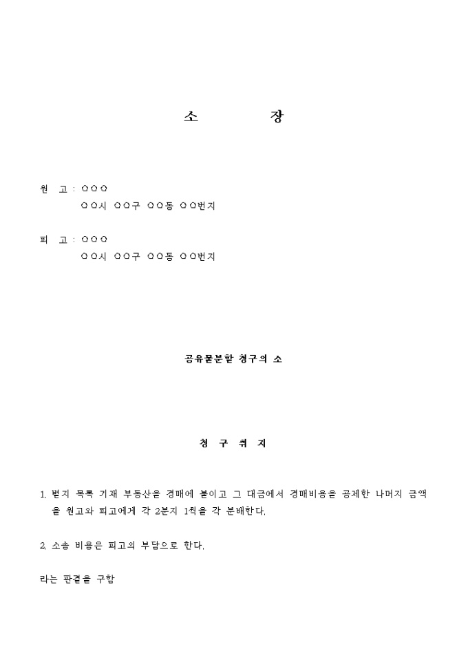 9,000원/월별지 목록 기재 부동산을 경매에 붙이고 그 대금에서 경매비용을 공제한 나머지 금액을 원고와 피고에게 각 2분지 1씩을 각 분배한다.