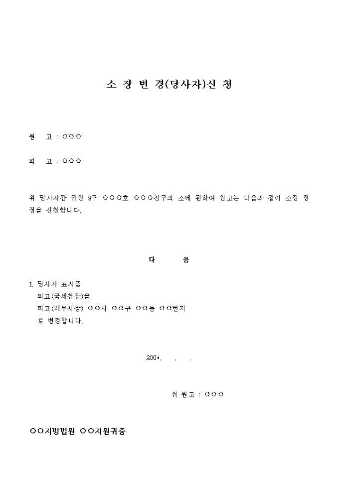 9,000원/월위 당사자간 귀원 9구 ○○○호 ○○○청구의 소에 관하여 원고는 다음과 같이 소장 정정을 신청합니다.