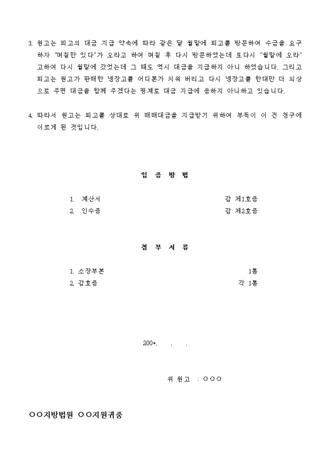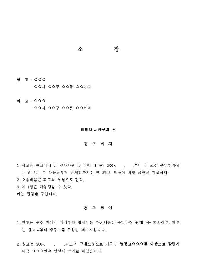 9,000원/월원고는 주소 지에서 냉장고와 새탁기등 가전제품을 수입하여 판매하는 회사이고, 피고는 원고로부터 냉장고를 구입한 매수자입니다.