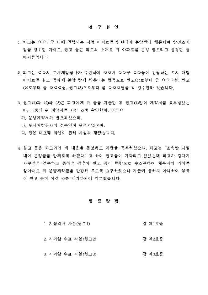 9,000원/월피고는 ○○지구 내에 건립되는 시영 아파트를 일반에게 분양받게 해준다며 알선소개업을 영위한 자이고, 원고 등은 피고의 소개로 위 아파트를 분양 받으려고 신청한 원매자들입니다