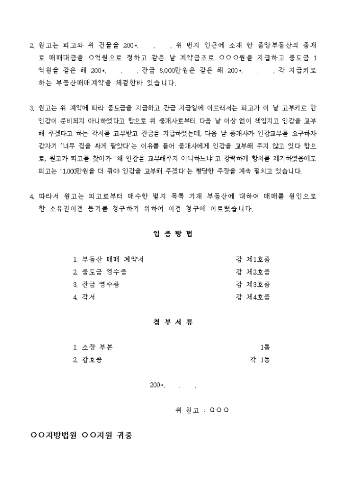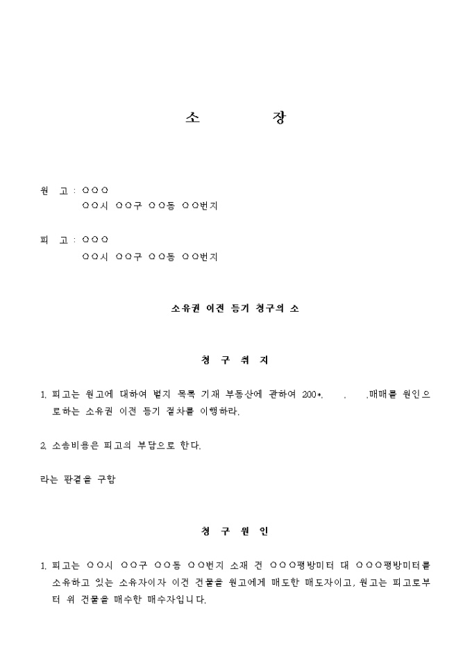 9,000원/월피고는 원고에 대하여 별지 목록 기재 부동산에 관하여 200*. . .매매를 원인으로 하는 소유권 이전 등기 절차를 이행하라.