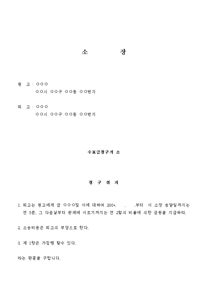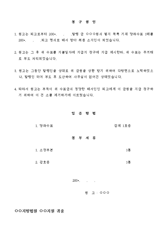 9,000원/월원고는 피고로부터 200*. . .발행 금 ○○○원의 별지 목록 기재 당좌수표 1매를 200*. . .피고 명의로 배서 받아 최종 소지인이 되었습니다.