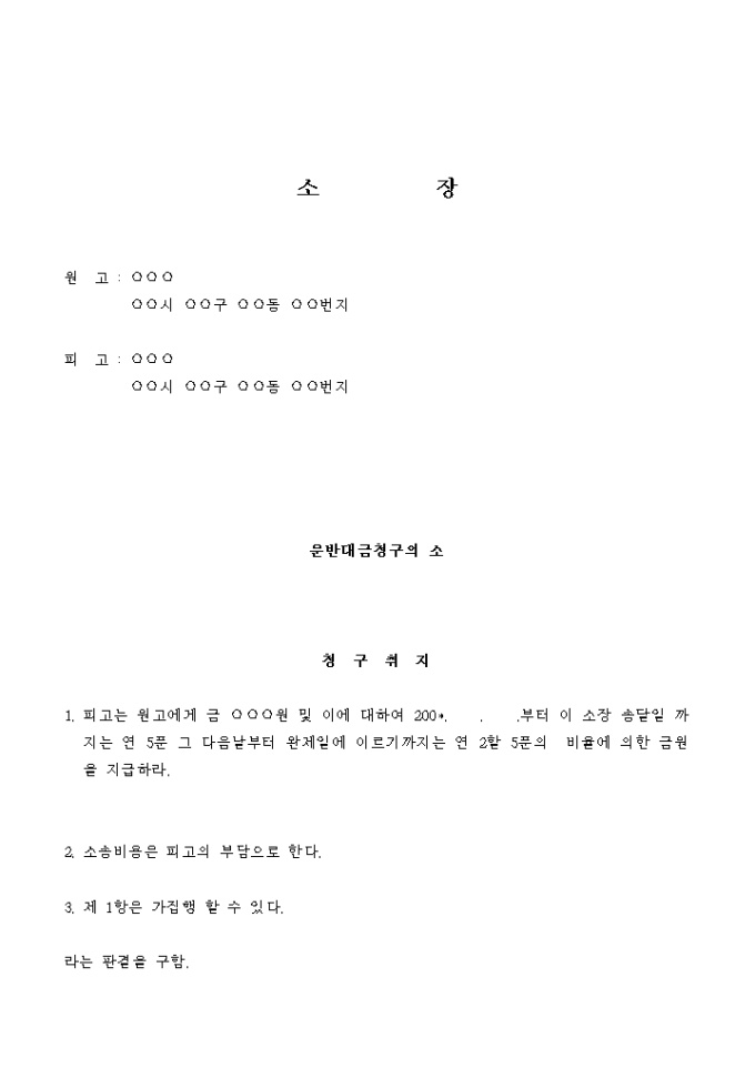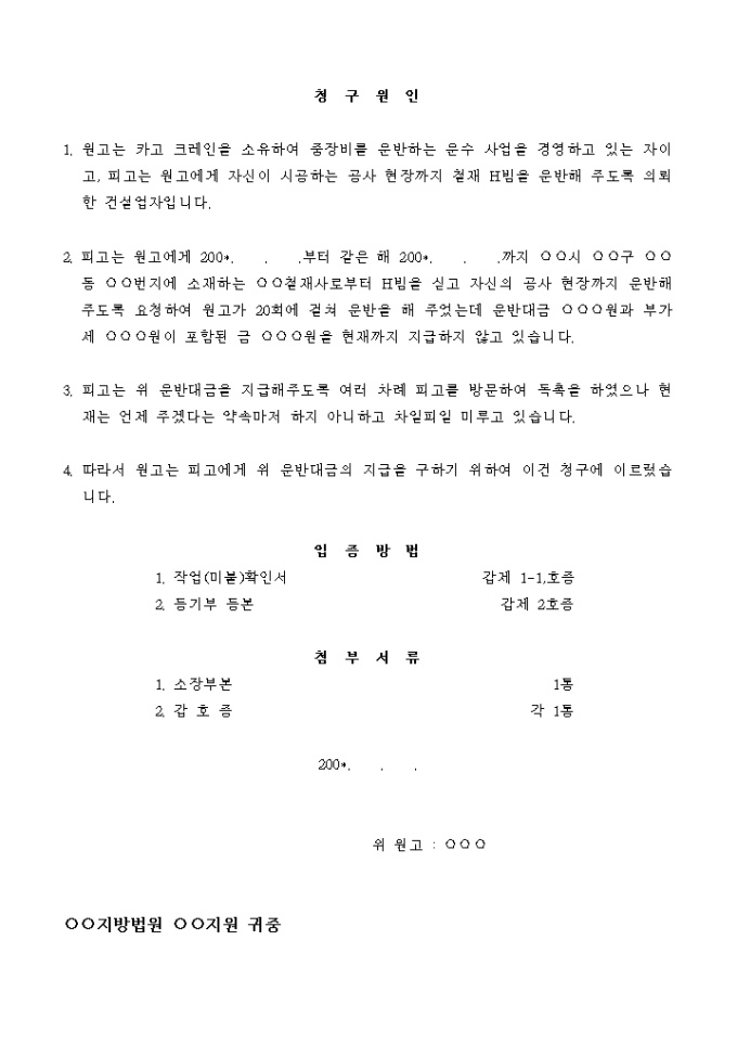 9,000원/월원고는 카고 크레인을 소유하여 중장비를 운반하는 운수 사업을 경영하고 있는 자이고, 피고는 원고에게 자신이 시공하는 공사 현장까지 철재 H빔을 운반해 주도록 의뢰한 건설업자입니다.