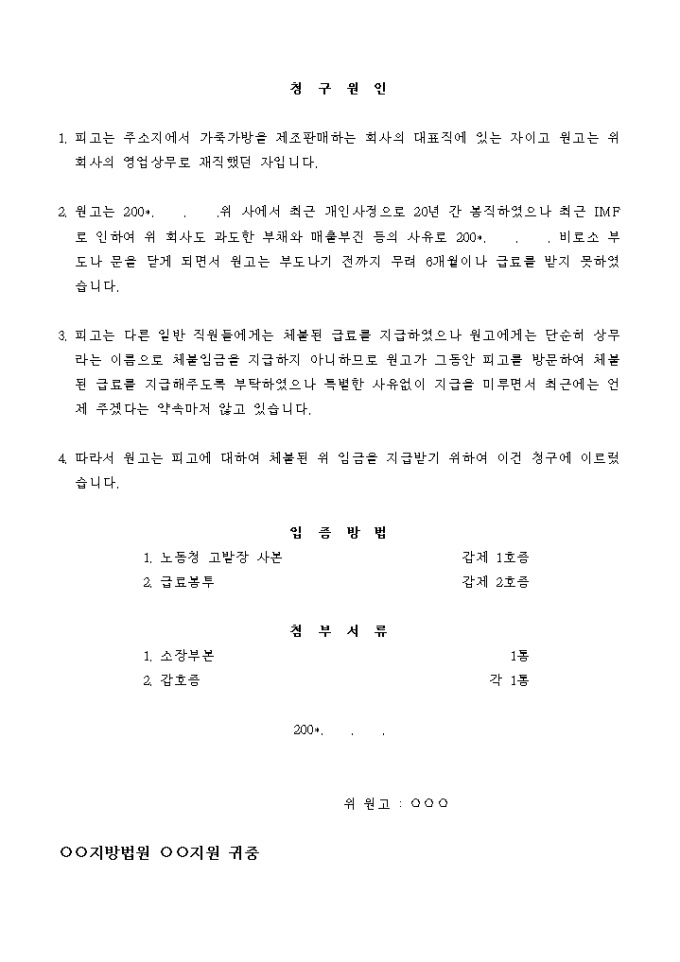 9,000원/월피고는 주소지에서 가죽가방을 제조판매하는 회사의 대표직에 있는 자이고 원고는 위 회사의 영업상무로 재직했던 자입니다.