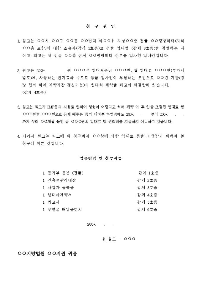 임대료청구의 소(영업이 안된다는 이유)