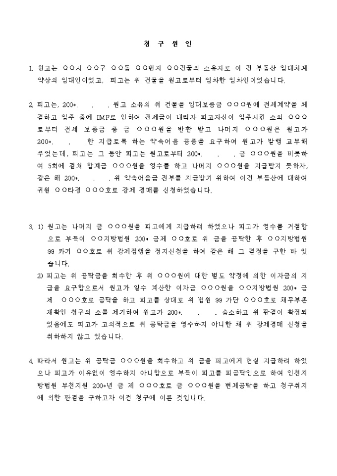 9,000원/월원고는 ○○시 ○○구 ○○동 ○○번지 ○○건물의 소유자로 이 건 부동산 임대차계약상의 임대인이었고, 피고는 위 건물을 원고로부터 임차한 임차인이었습니다.