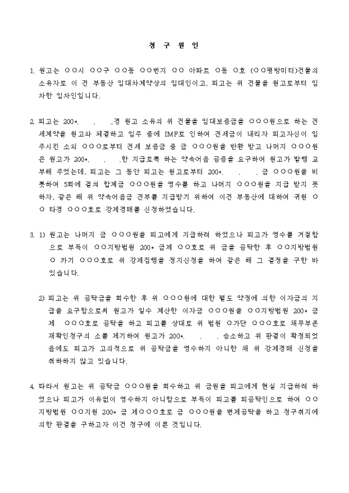 9,000원/월원고는 ○○시 ○○구 ○○동 ○○번지 ○○ 아파트 ○동 ○호 (○○평방미터)건물의 소유자로 이 건 부동산 임대차계약상의 임대인이고, 피고는 위 건물을 원고로부터 임차한 임차인입니다.