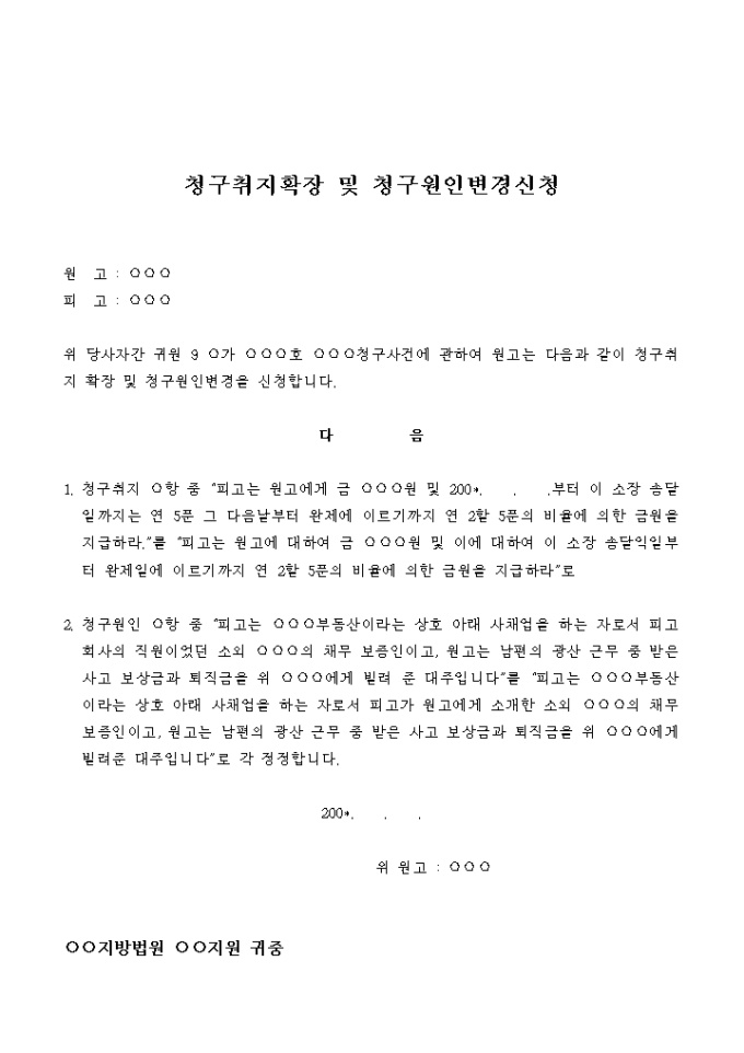 청구취지 ○항 중 “피고는 원고에게 금 ○○○원 및 200*. . .부터 이 소장 송달일까지는 연 5푼 그 다음날부터 완제에 이르기까지 연 2할 5푼의 비율에 의한 금원