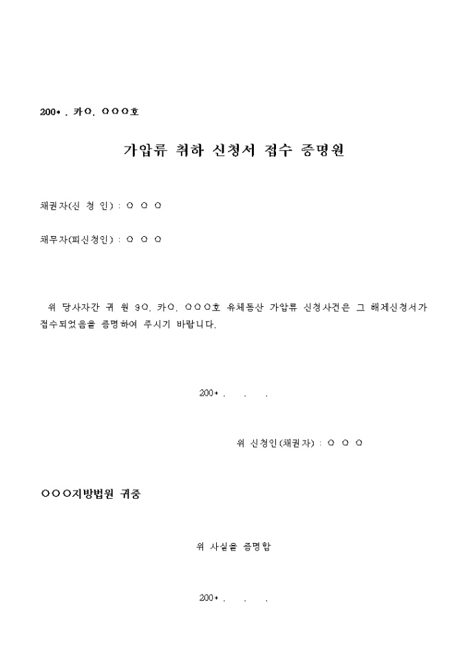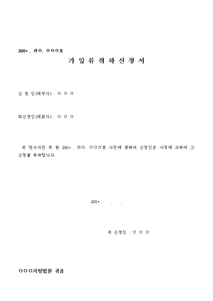 9,000원/월위 당사자간 귀 원 200* . 카○. ○○○호 사건에 관하여 신청인은 사정에 의하여 그 신청을 취하합니다.