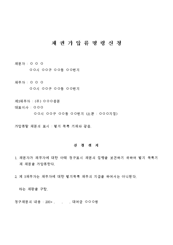 채권가압류 신청서(증권투자 위해 대여함)