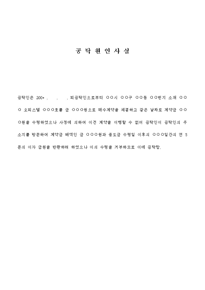 공탁인은 200* . . . 피공탁인으로부터 ○○시 ○○구 ○○동 ○○번지 소재 ○○○ 오피스텔 ○○○호를 금 ○○○원으로 매수계약을 체결하고 같은 날짜로 계약금 ○○○
