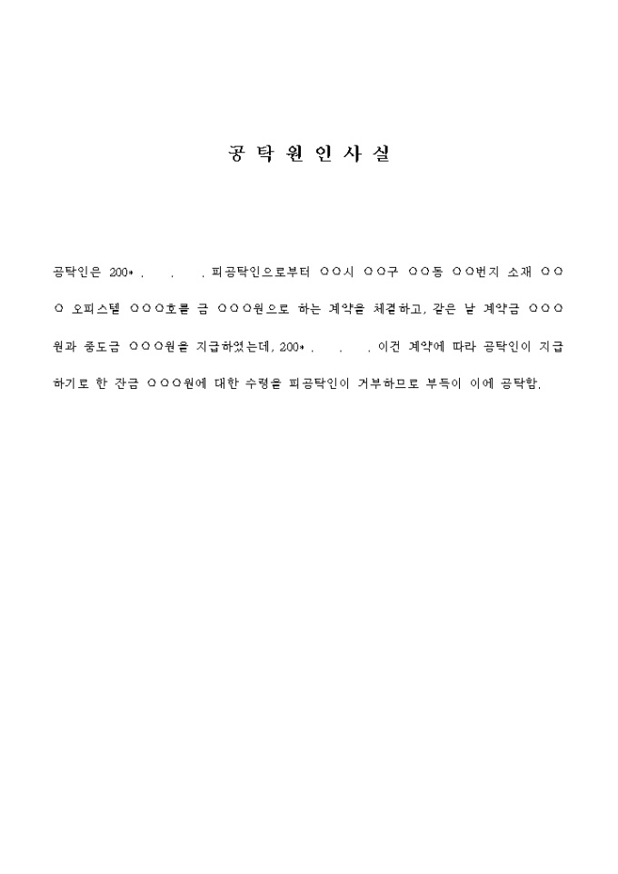 공탁인은 200* . . . 피공탁인으로부터 ○○시 ○○구 ○○동 ○○번지 소재 ○○○ 오피스텔 ○○○호를 금 ○○○원으로 하는 계약을 체결하고, 같은 날 계약금 ○○○