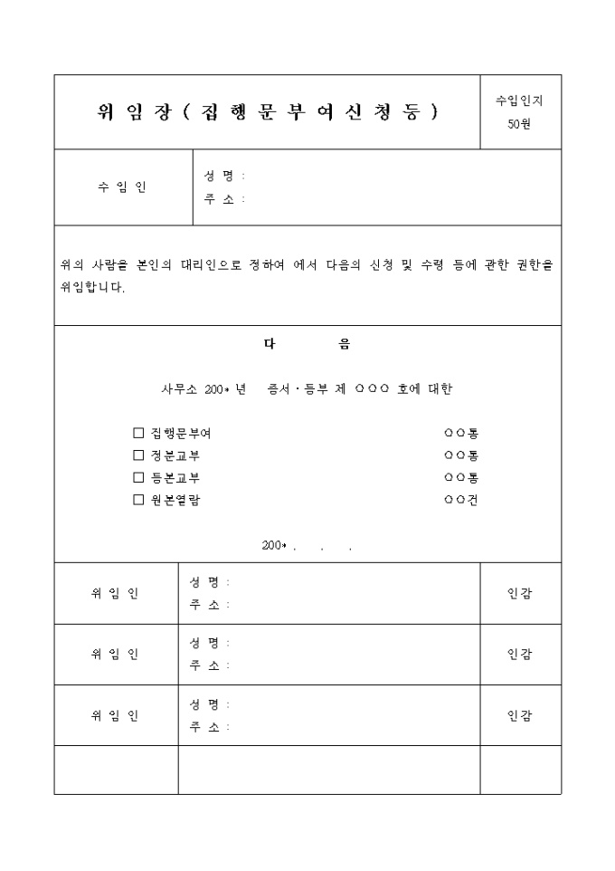 9,000원/월위의 사람을 본인의 대리인으로 정하여 에서 다음의 신청 및 수령 등에 관한 권한을 위임합니다.