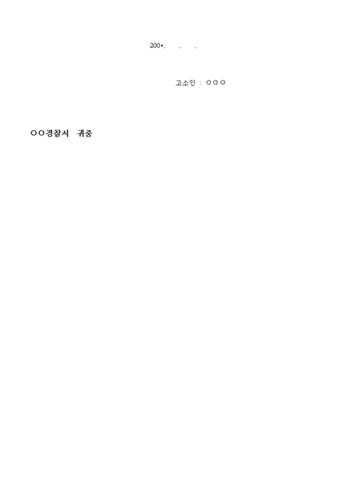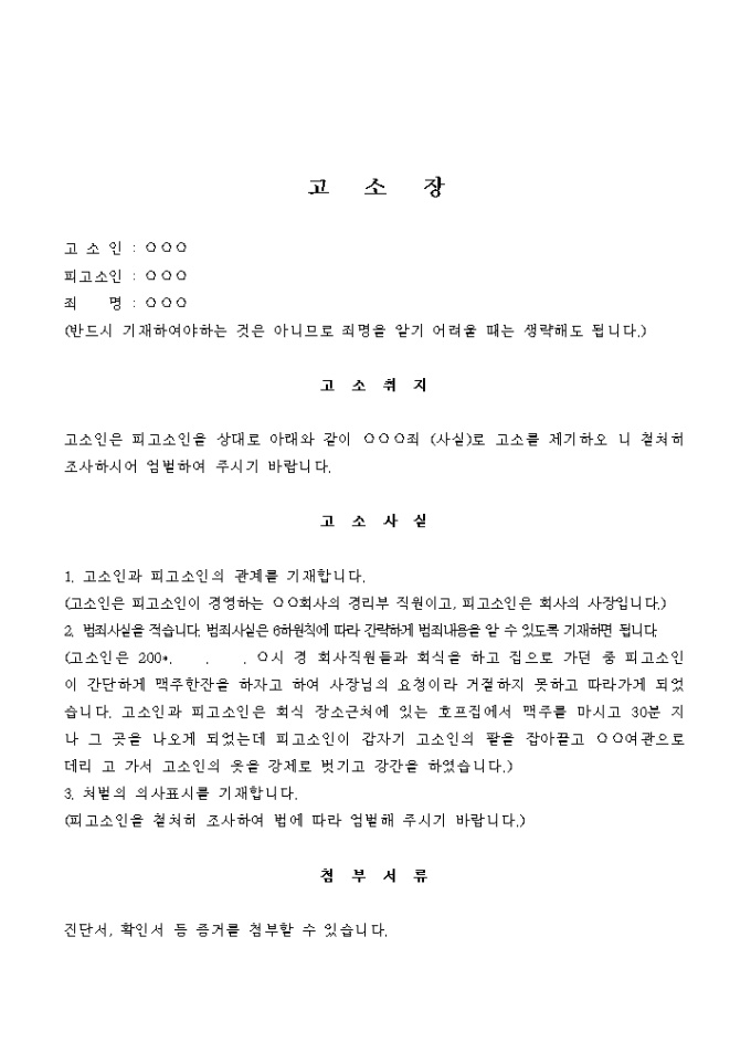 9,000원/월고소인은 피고소인을 상대로 아래와 같이 ○○○죄 (사실)로 고소를 제기하오 니 철처히 조사하시어 엄벌하여 주시기 바랍니다.