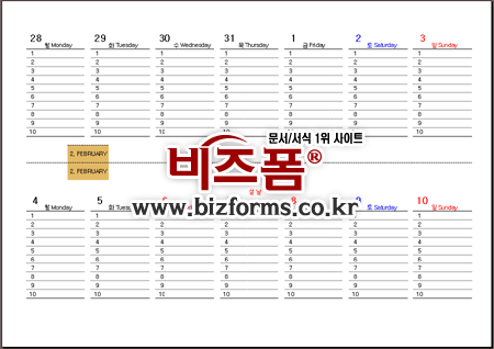 9,000원/월2008년 2월 주간스케줄 달력 입니다.