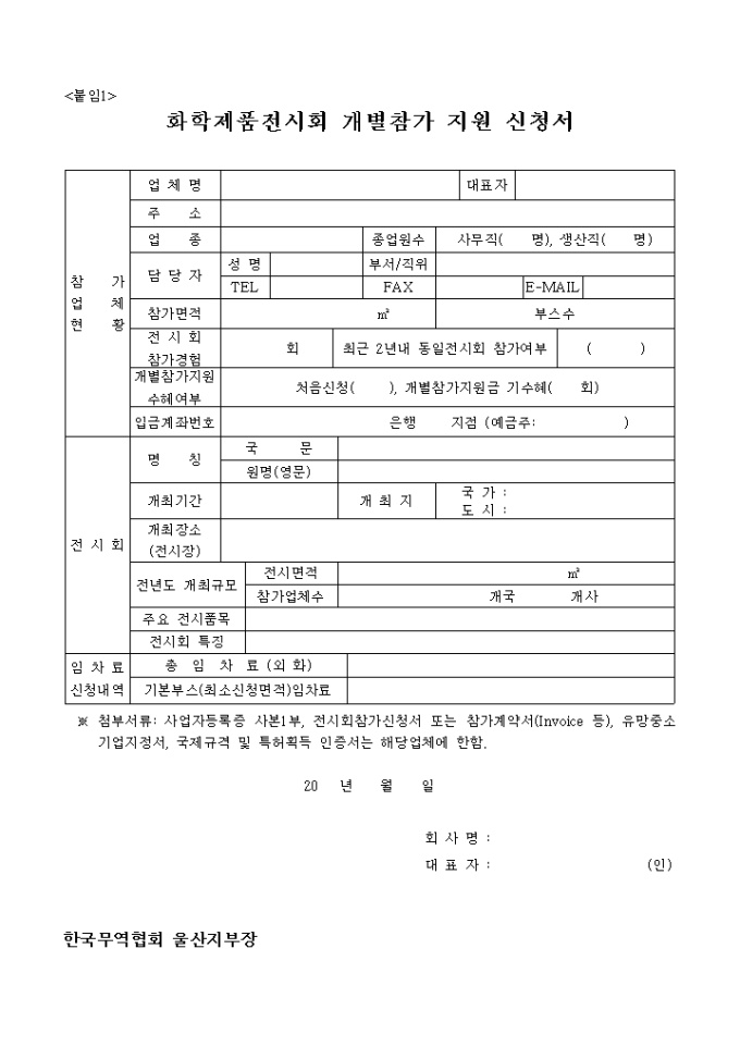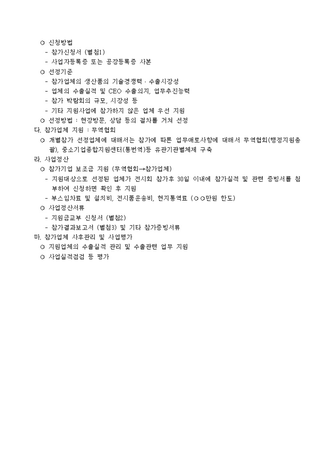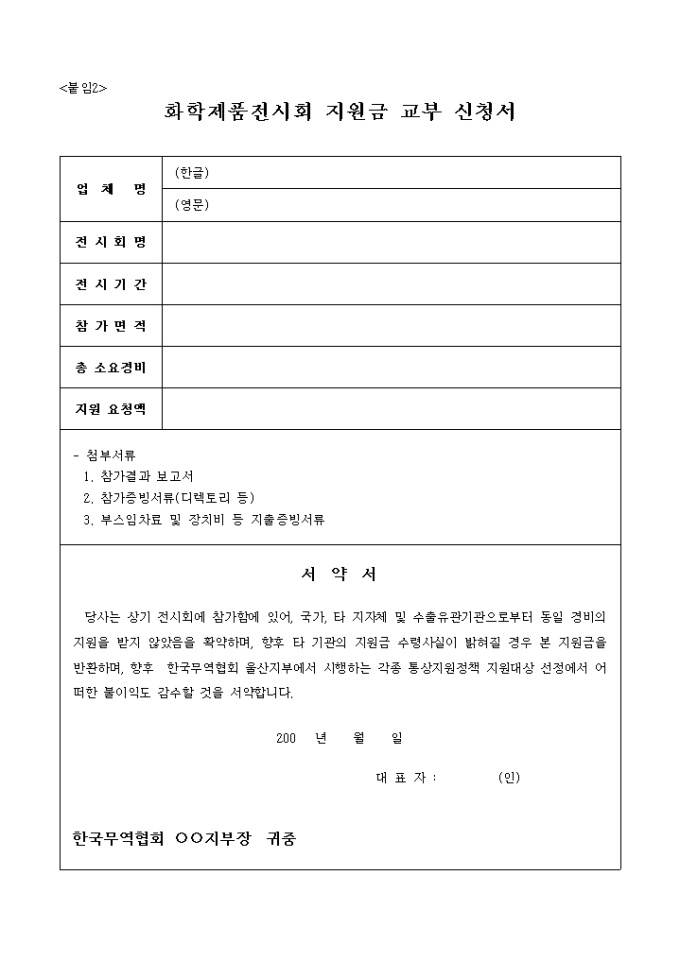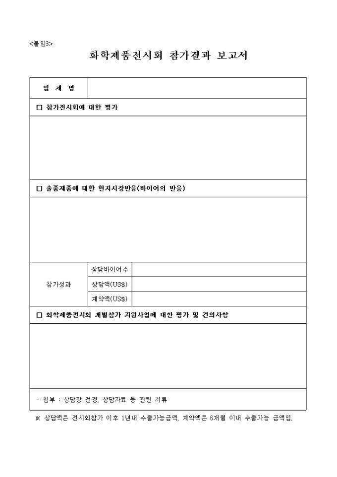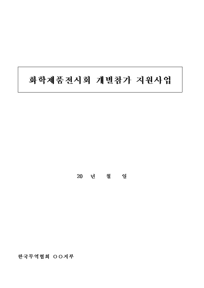 9,000원/월중소 수출 화학기업들의 생산품목별 특성화된 해외 전문 화학전시회 개별 참가 지원을 통하여 , 기업의 해외이미지 제고 및 무역능력 배양을 도모하고 전문 바이어와의 교류를 통한 해외판로 개척을 추진한다는 내용의 화학제품전시회 사업계획서 양식입니다.