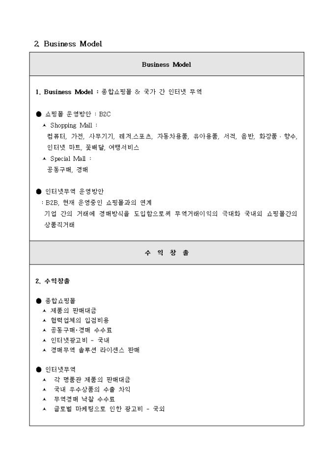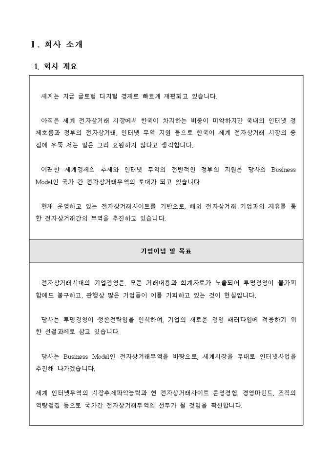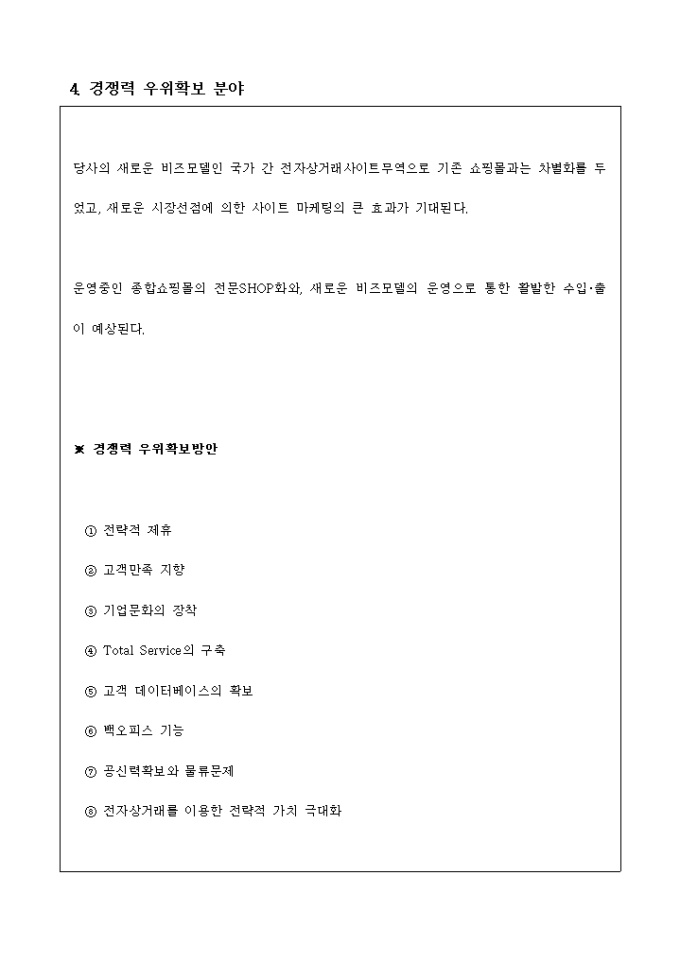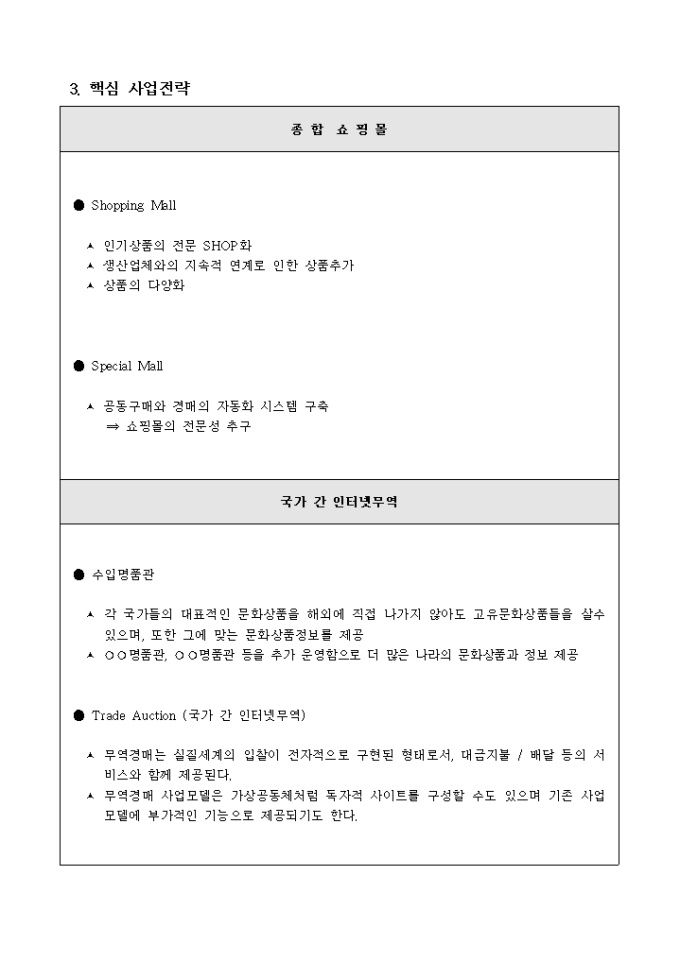 쇼핑몰 사업계획서(국가간 전자상거래)