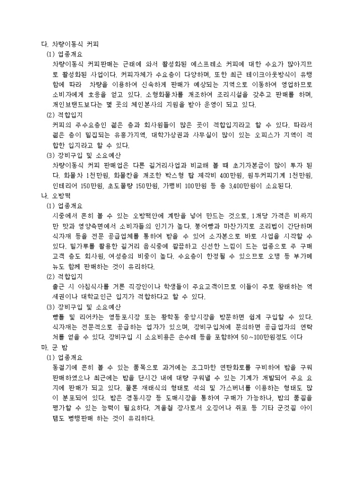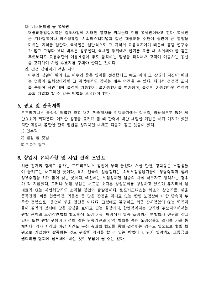 노점(로드비지니스) 창업가이드