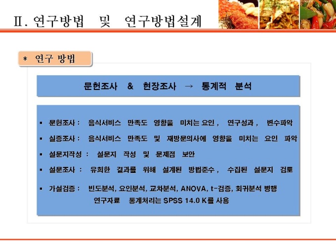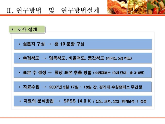 5.자료의 분석방법 → SPSS 14.0 K ; 빈도, 교차, 요인, 회귀분석, t-검증