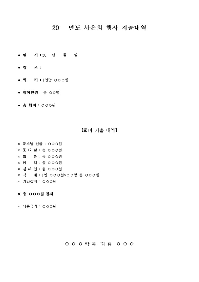 사은회 행사 지출내역서