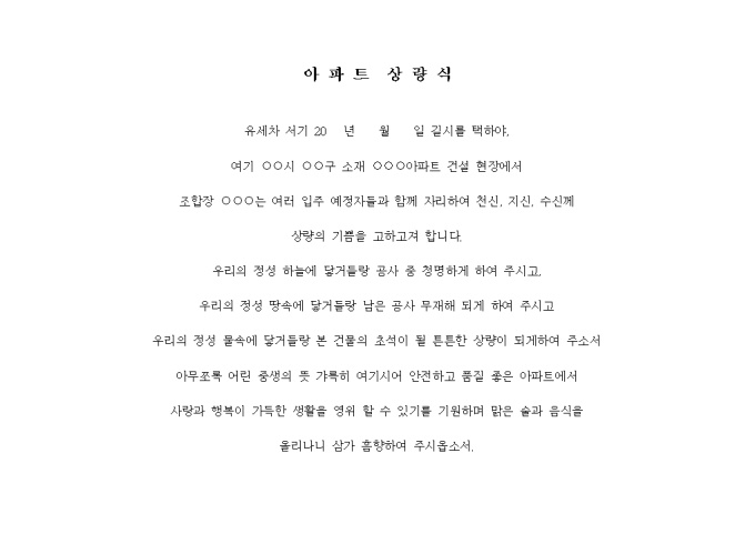 9,000원/월아파트 상량식 시에 사용할 수 있는 문구입니다.