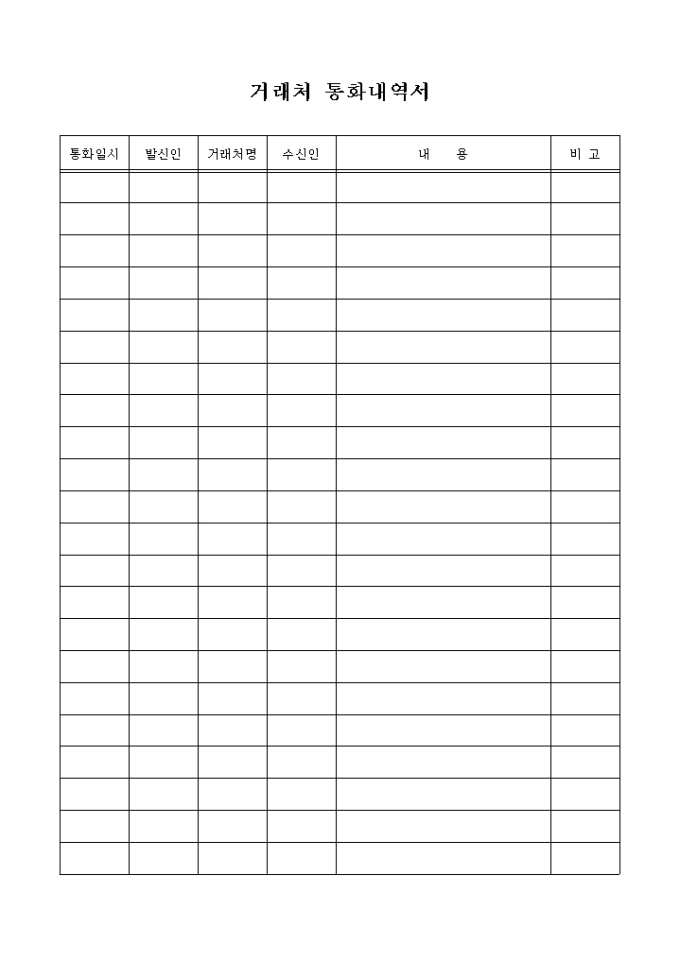 9,000원/월통화일시, 발신인, 거래처명, 수신인, 내용 등으로 구성된 거래처 통화내역서 양식입니다