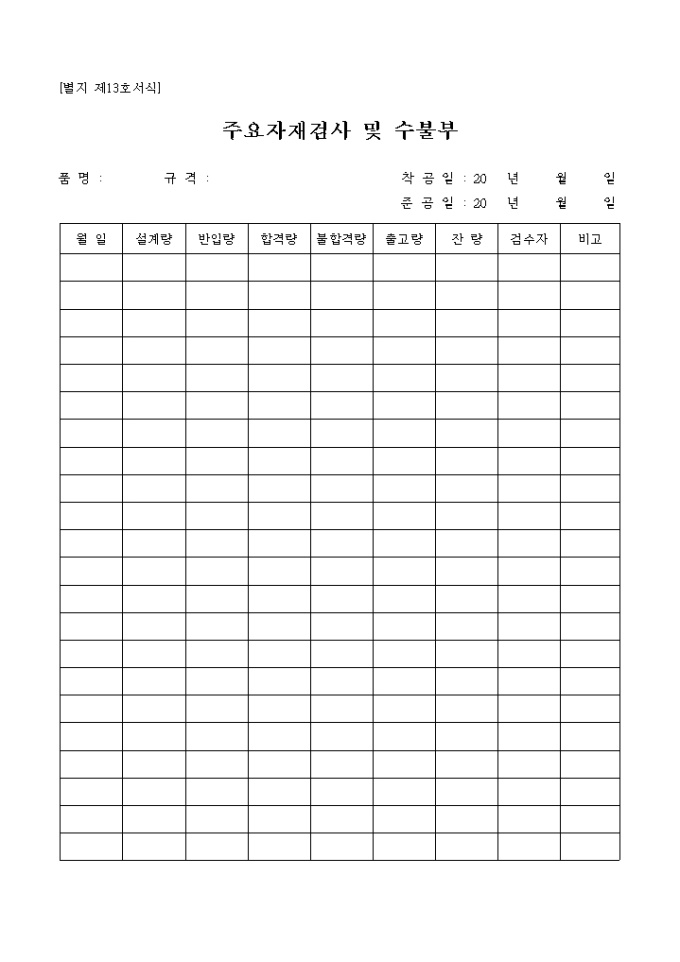 주요자재검사 및 수불부(품명,규격)