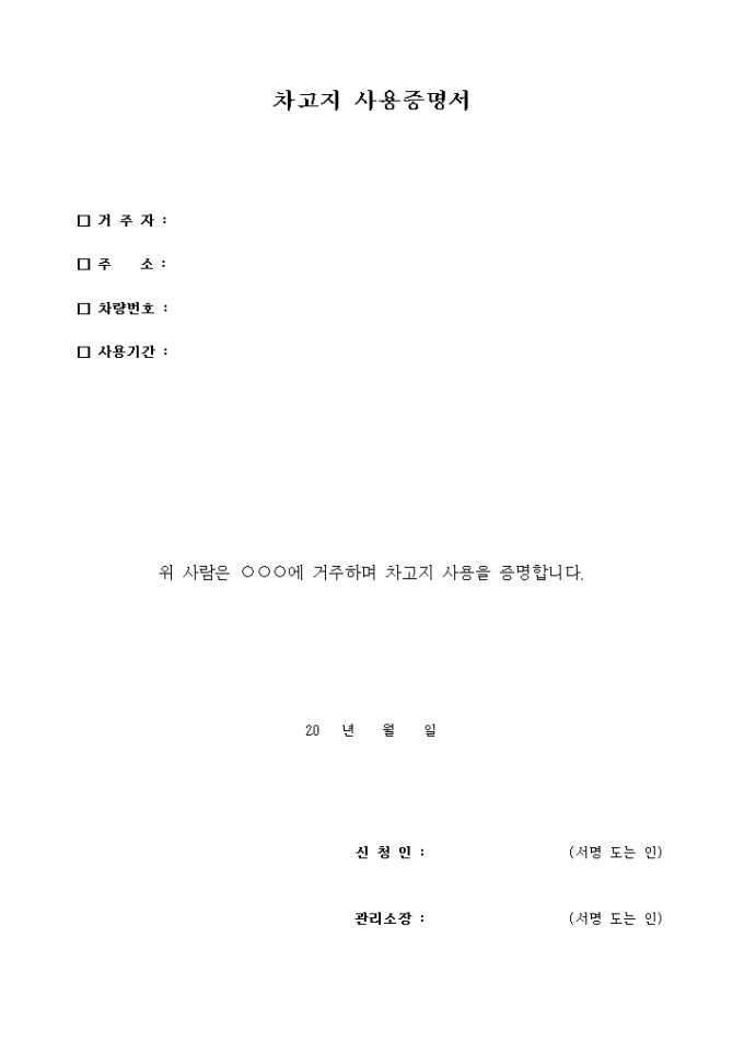 차고지 사용증명서