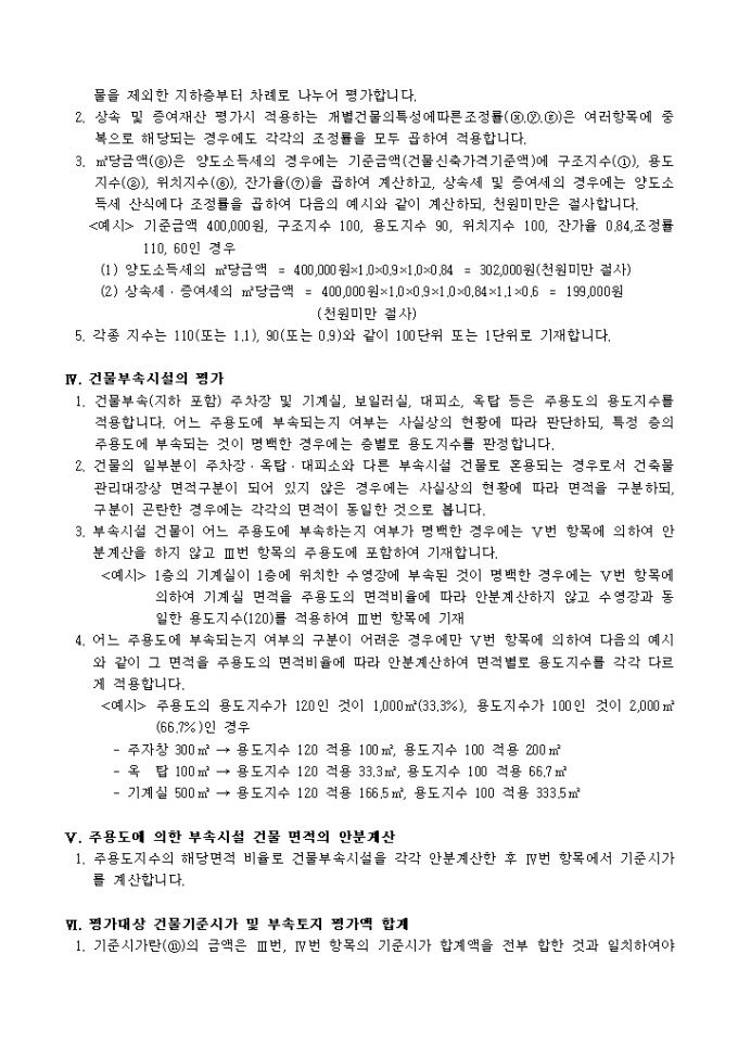 건물기준시가 계산서(작성요령)