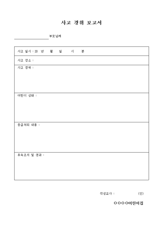 사고경위 보고서(어린이집)