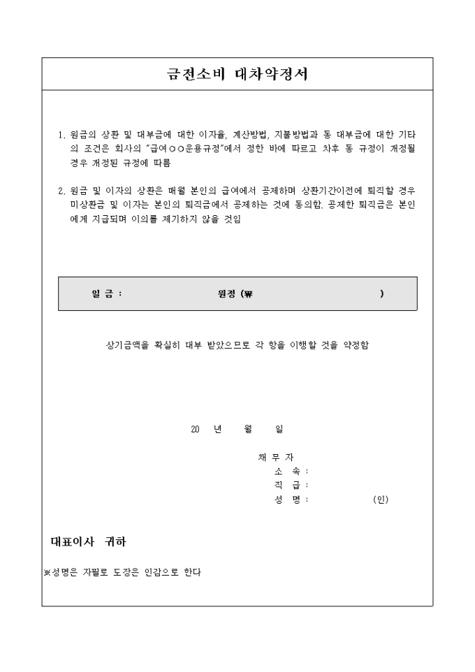 금전소비대차 약정서(표형식)