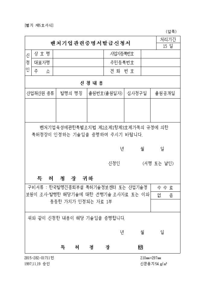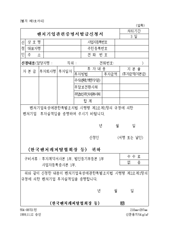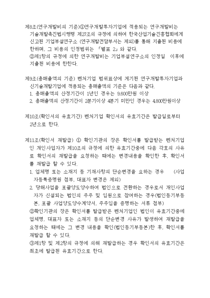 9,000원/월벤처기업확인과 관련된 신청절차, 구비서류, 확인기관 등이 규정되어 있으니 참고하시기 바랍니다. 출처 : 중소기업청 벤처기업국 벤처정책과