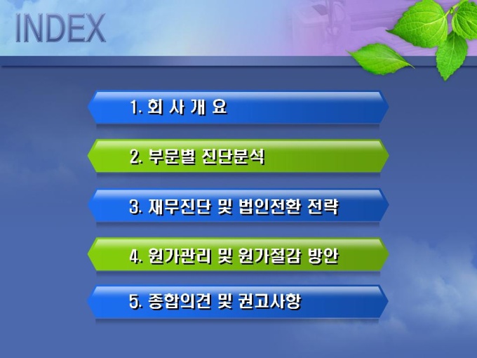 의료용품회사의 원가관리시스템 구축방안 보고서입니다. 1. 회사개요 2. 부문별 진단분석 3. 재무진단 및 법인전환 전략 4. 원가관리 및 원가절감 방안 5. 종합의견 및 권고사항