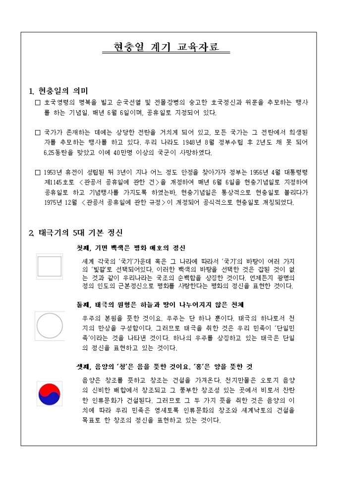 현충일 계기 교육자료