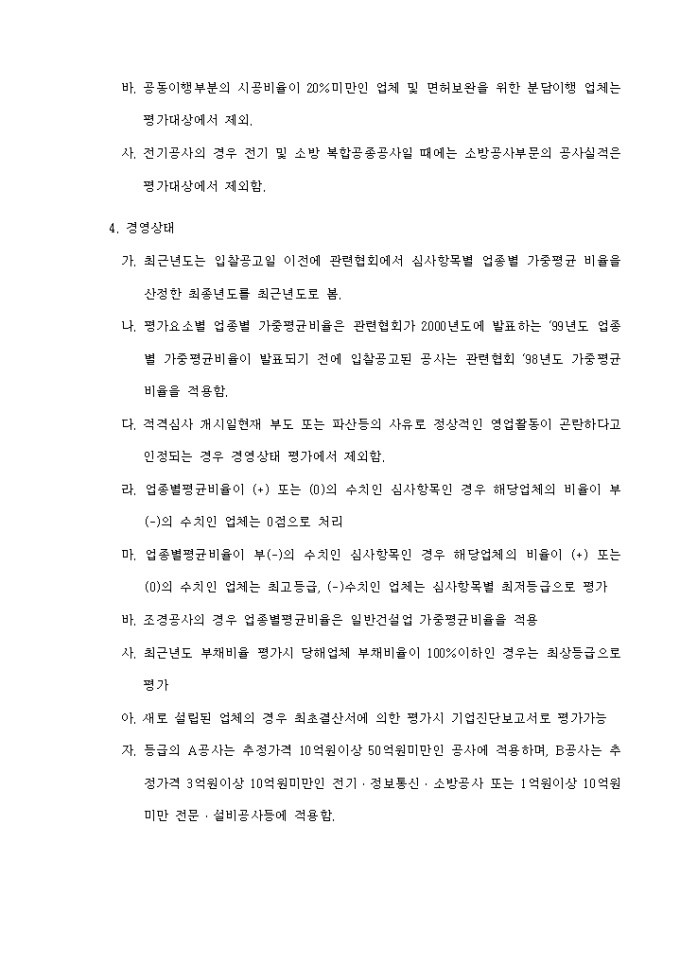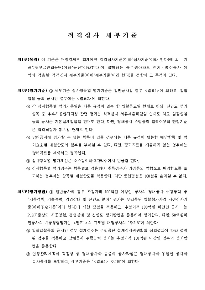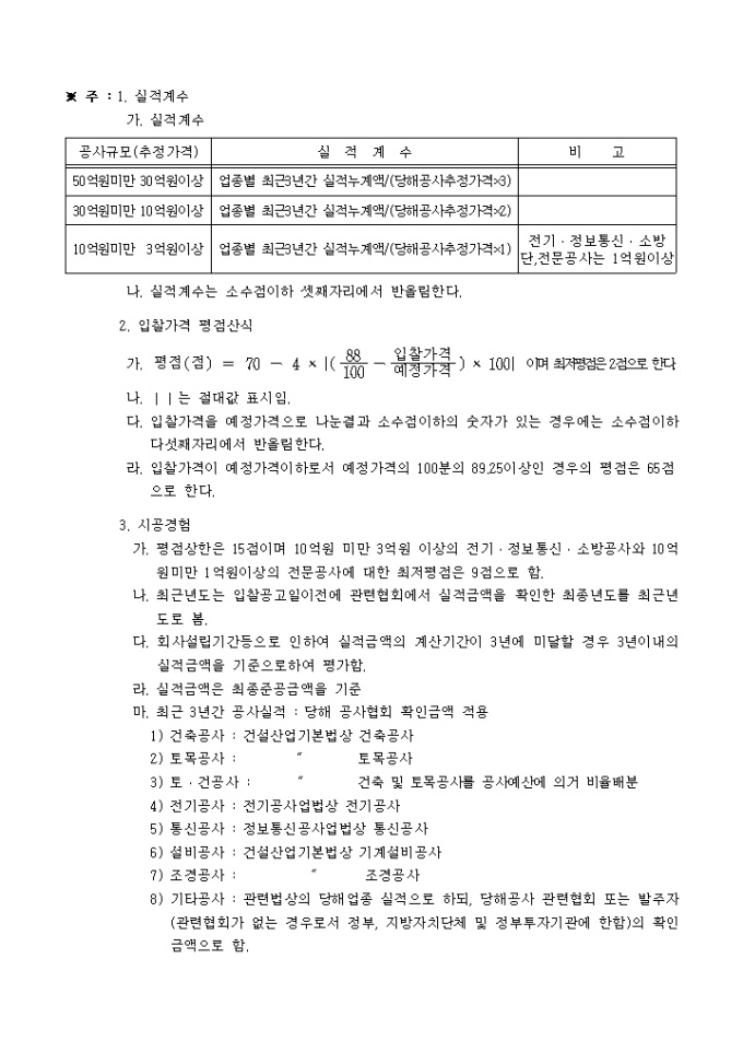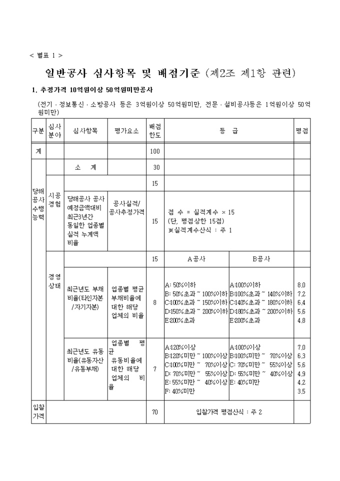 일반공사 심사항목 및 배점기준 (제2조 제1항 관련)