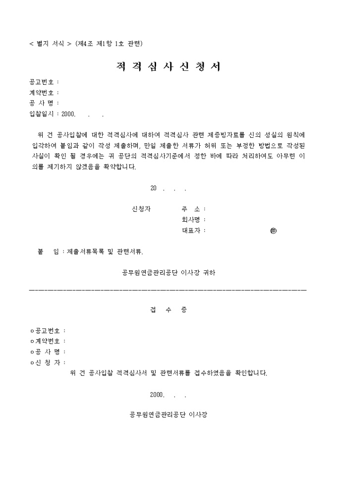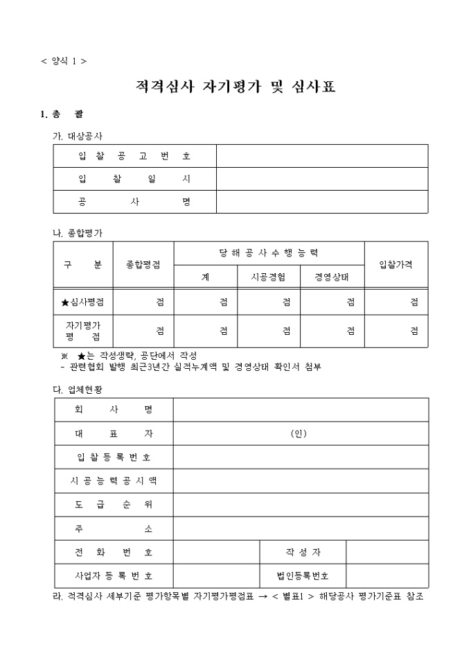9,000원/월공사입찰 적격심사서양식입니다. 모두 8조항으로 구성되어 있습니다. 자세한 내용은 다음을 참고하세요.